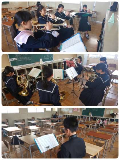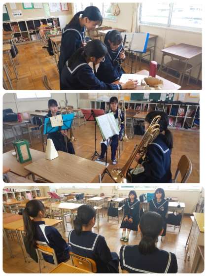 吹奏楽部が練習をがんばっています。