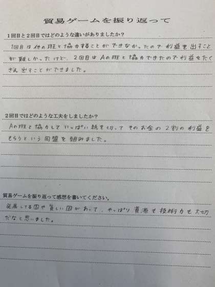 全ての班で利益が出る(発展した)という結果にはなりましたが、格差は広がってしまいました。
