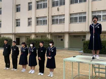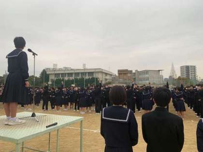 生徒会会長による集合指揮です。
