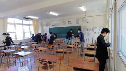 お世話になった学校に感謝を込めて、最後の掃除になりました。