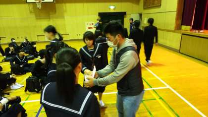 普段マスクを着ける習慣のない生徒も、今日はマスクを着けます。