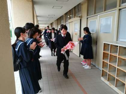 離任される教職員の方々が花道を通られました。