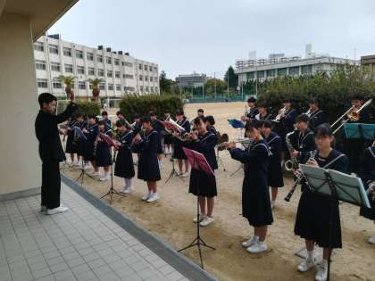 花道の演奏は吹奏楽部です。