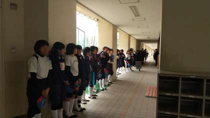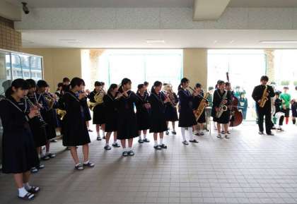 吹奏楽部だけでなく、サッカー部やソフトボール部も花道で出迎えています。