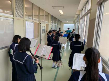 開けた窓から吹奏楽の演奏がグランドに響いています。合奏ができないのが残念ですね。