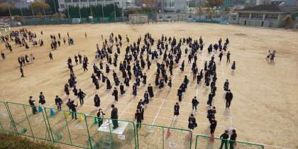 クラス発表があり、グラウンドの