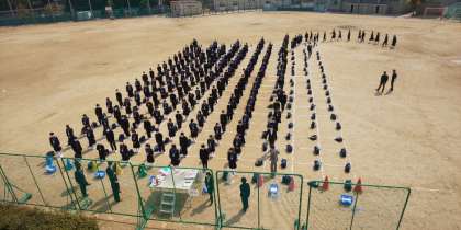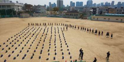 時短版の入学式を終え、新入生がグラウンドに戻ってきました。