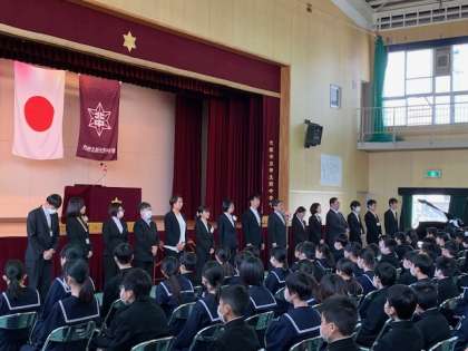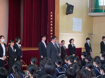 学年教職員を代表して、1年学年主任の寺田先生から新入生、保護者の方に向けての挨拶です。