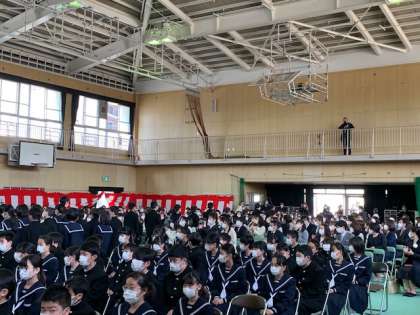 この後、グランドで配布物や予定の連絡などがあります。