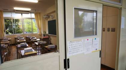 教室の換気を徹底して、生徒・保護者の来校の準備をしています。