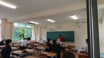 体育館で集会を行なった後、教室で課題の回収や手紙や学年だよりなどの配布を行いました。