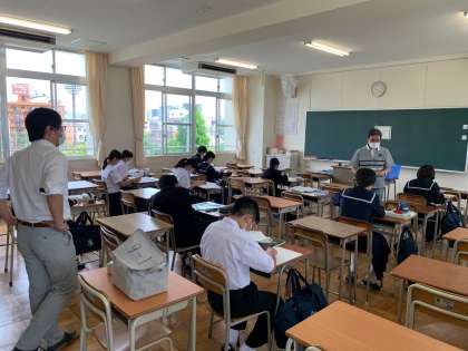 他の生徒は教室内で自習です。副担任の先生も教室でサポートしています。