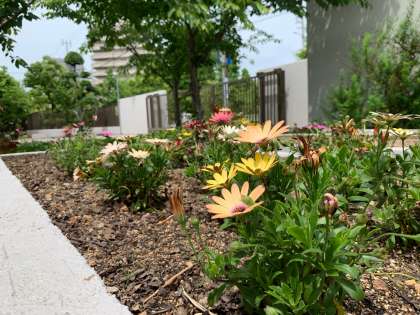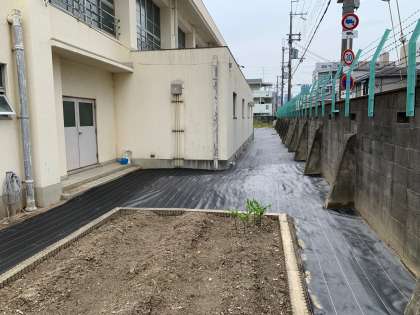 花壇の手入れなど目に見える部分だけでなく、体育館裏の除草シートなど細部にわたって整備されています。