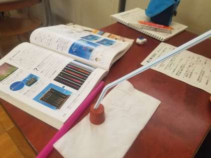 ストローとティシュペーパーを使用して静電気のミニ実験授業です。