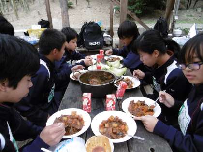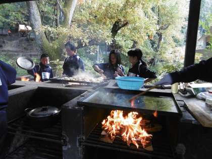 11月18日(火)2年生は、吹田市自然体験交流センターに秋の校外学習に出かけました。すがすがしい空気の中、赤や黄色に染まった木々の間を通り抜け、自然あふれるセンターに到着しました。班ごとに自分たちで決めたメニューをもとに、各係に分かれて野外炊さんに取り組みました。どのクラスもどの班も足早に行き来しながら、一生懸命に活動していました。おかげで出来上がったお料理も美味しかったです!