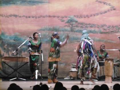 鑑賞会(今年は音楽)は、アフリカ音楽!実際にタンザニアからアーティストの方々がお越しになりました。演奏者の皆さんは、打楽器のリズムに乗りに乗ってパワフルに、そして明るくユーモラスに私たちを楽しませてくださいました。始めのうちは、DNAの違いに圧倒されていた生徒たちですが、笑いも起こり拍手も大きくなり、どんどんその音楽にひきこまれていったようです。