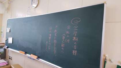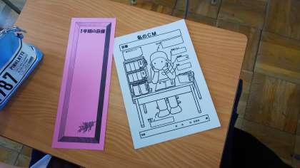 一学期の目標と私のCMを書いています。教室に掲示するそうなので、丁寧に書きたいですね。
