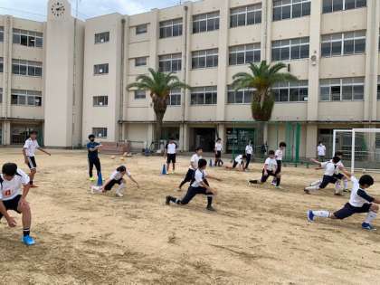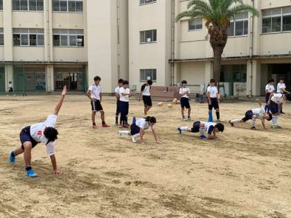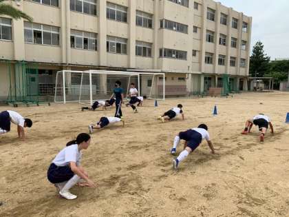 アップで身体作り運動を取り入れて、怪我の予防、体幹の強化に取り組みます。