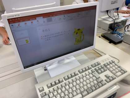 技術の授業ではパワーポイントを使って紙芝居を作っています。