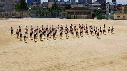 大きな声で号令をかけながら、その場足踏みをしています。手足がよく上がっていて、また、学校中に聞こえるほどの立派な声でした。
