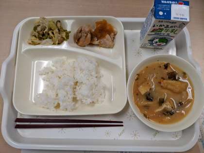 ごはん・牛乳・鶏肉のおろしじょうゆかけ・