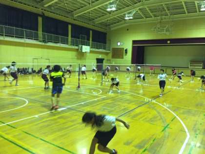 体育館ではバドミントン部(女子)の練習が始まりました。