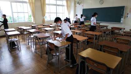 雑巾二枚使いで机を拭く生徒、細かいところまで丁寧にごみをとる生徒と、それぞれが工夫しながら取り組んでいました。
