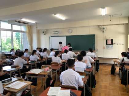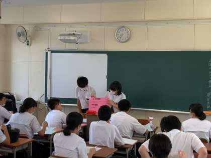 3年1組の朝学活で委員長が委員長会、生徒議会で決まった学年目標とクラス目標を発表しました。