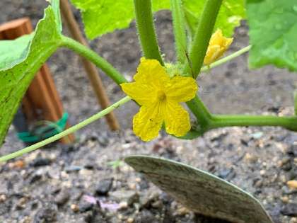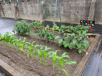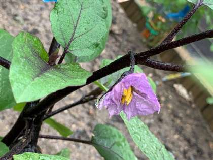 あいにくの雨ですが、植物にとっては恵みの雨ですね。くすのきファームではナスビやキュウリの花が咲いています。