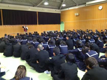 12月3日(水)6限 格技室にて、進路指導担当の岡田先生より、2年生を対象とした「進路講話」を行いました。「受験のシステム」や「3年生の1年間を通したスケジュール」など、具体的な内容を教えていただきました。様子を伺うと、「2年生の聞く態度がとてもいいので、多くの事柄をお話しできましたよ」ということでした。