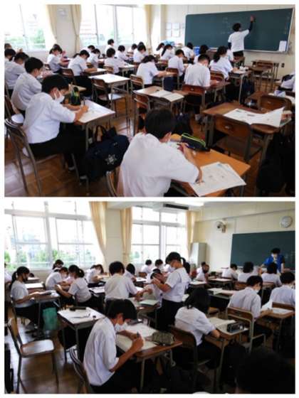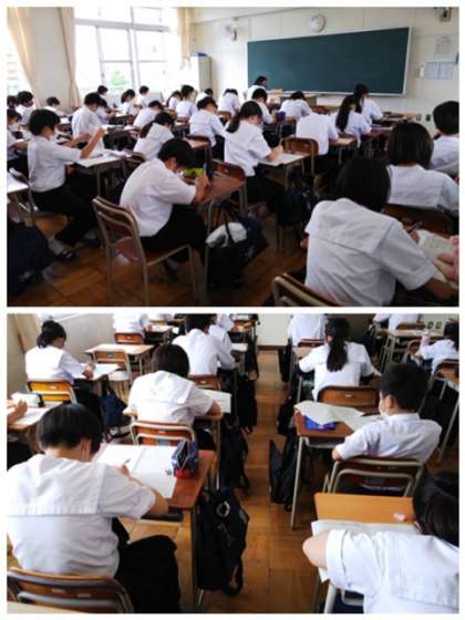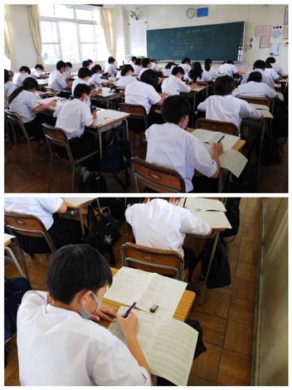 内科検診の一方で、教室ではテストに向けて、テストの受け方や範囲表、課題プリントなどが配られました。期末テストまであと二週間、頑張りましょう。
