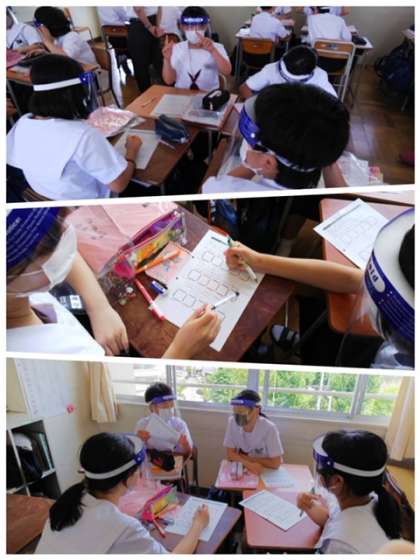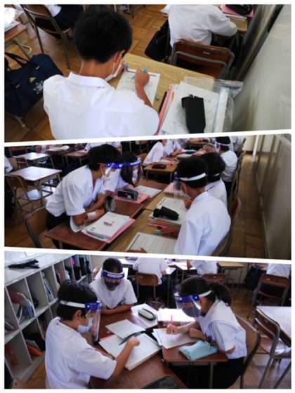 正方形を作るために必要な棒の数を考えています。自分で考えたあと、班の仲間と話し合いました。