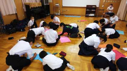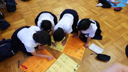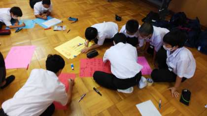 50m走や縄跳びの記録をランキングにしています。体育委員のほか、有志で手伝いに来てくれた生徒もいました。張り出されるのが楽しみですね。