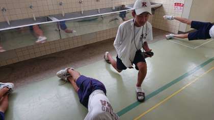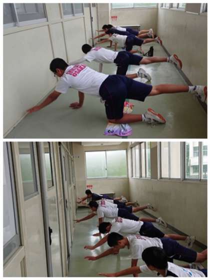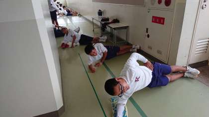 体幹トレーニングです。皆、自分に厳しく鍛えています。