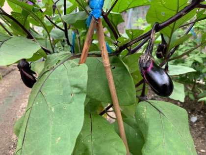 ナスビやトマトが実っています。