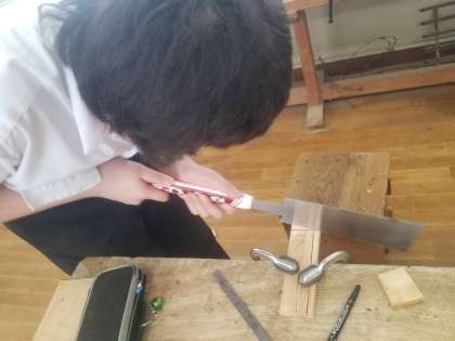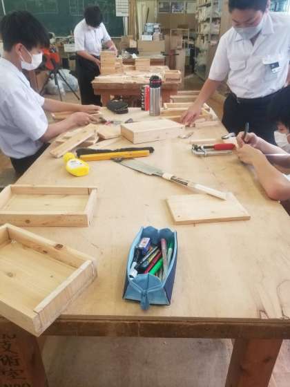 1年生中心に3年が手助けしながら、工具箱を制作しています。