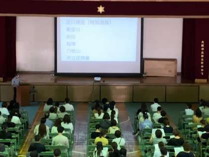 進路指導主事の後川先生から進路についての説明が行われています。