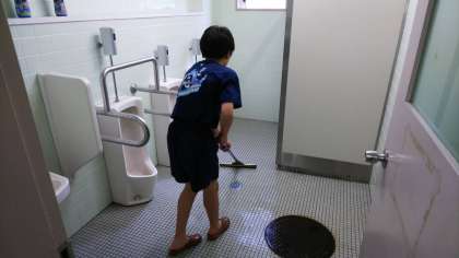 男子バレーボール部の1年生がトイレ掃除をしていました。体育館は利用している部活が交代で掃除をします。丁寧で良い仕事ぶりでした。