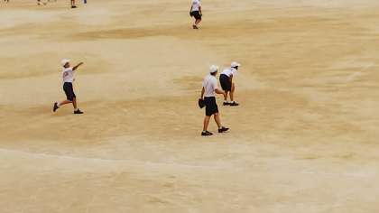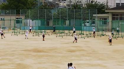 今日は野球部がグラウンドをメインで使用する日です。広く使ってバッティングをしていました。