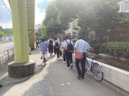 北中生は学校側を一列で歩きましょう。