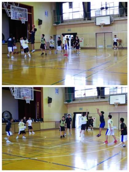 前半は外で、後半は体育館で練習しました。高校生が来てくれて、最後のゲームはとても白熱したものになりました。
