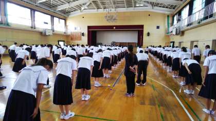 熱中症に気を付けること。朝学習の様子は。夏休みをすごす間に、良いことと悪いことの判断正しくできるか。携帯の使い方と実際にあったトラブル。提出物。服装や頭髪のルール。