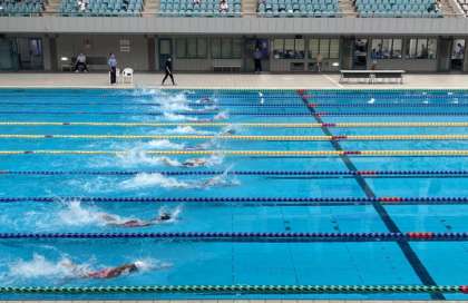 8レーン(手前から3つめ)が野村さんです。