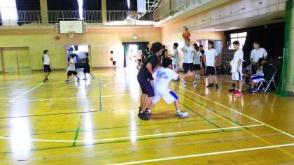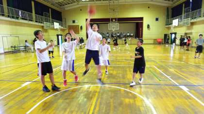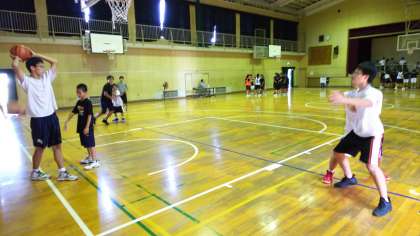 放課後に体育館で練習しました。ハーフコートでしたが、声を掛け合ってよく動いていました。