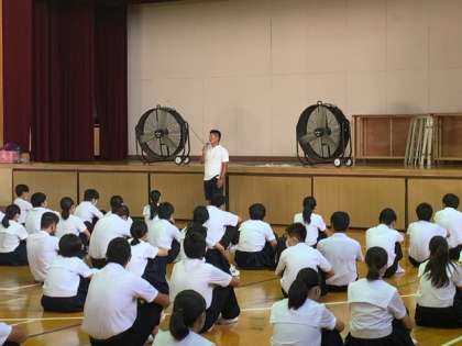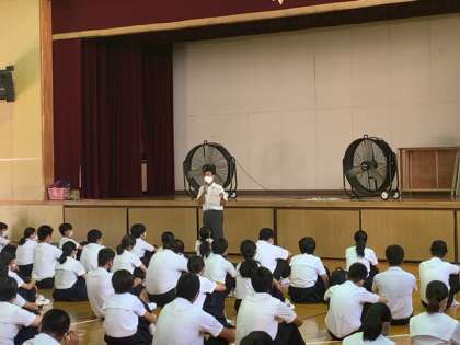その後、田中先生から「時間」に関するお話しがありました。2学期最初の集会で、集合が遅かったです。来週、頑張りましょう!