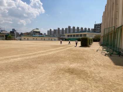 2学期になって初めての昼休みですが、猛暑のためかグラウンドで遊んでいる人はほとんどいません。
