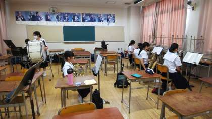 写真は1年生です。合奏には参加できませんが、先輩をまねて成長してほしいですね。