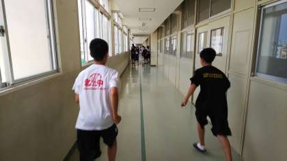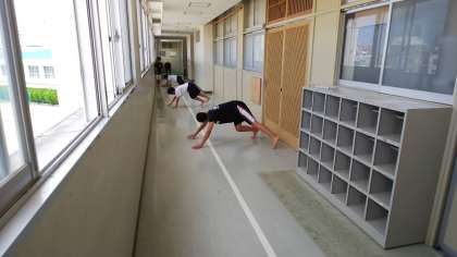 雷のため校内でトレーニングを行いました。基本の筋トレなど地味なメニューばかりですが、しっかり取り組んでいました。