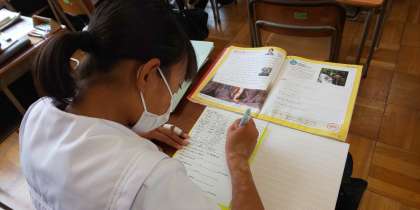 教科書の少し難しい読み物に挑戦していました。