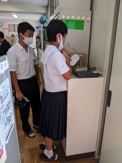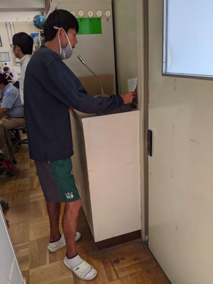 生徒会から全校生徒へスローガン募集の告知と生活指導部からの諸注意です。